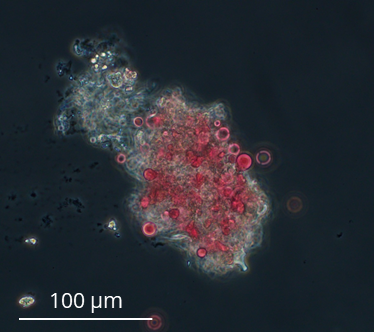 Oil red staining revealed the presence of abundant oil content. It is thought to originate from the oil content of rice bran.